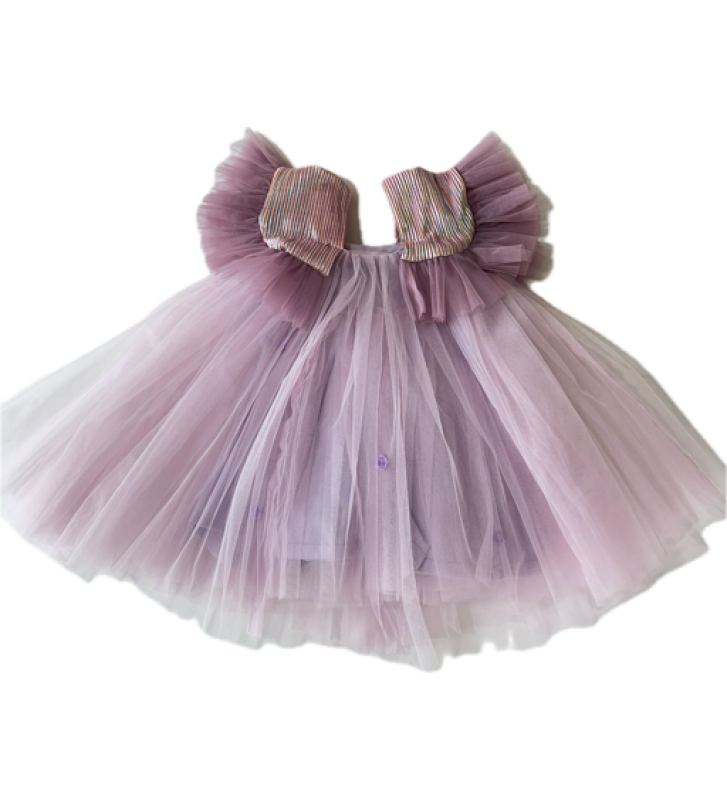A-line-tunic-(2-3 years)-ruffled--mesh-lavender-butterfly-girls-dress